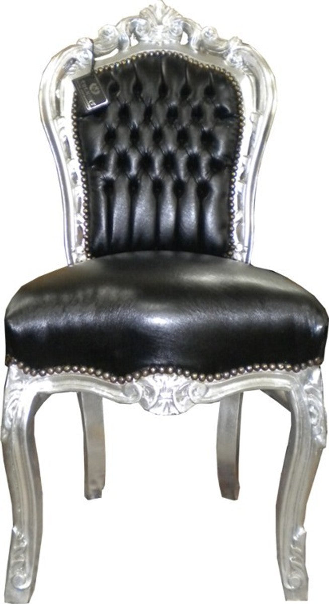 Barock Esszimmer Stuhl Schwarz Lederoptik / Silber