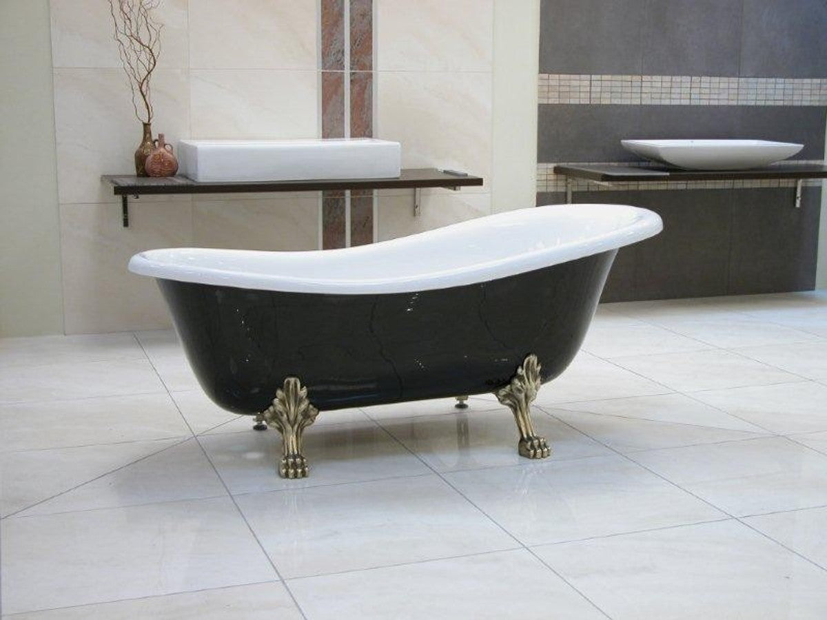 Freistehende Luxus Badewanne Jugendstil Roma Schwarz/Weiß/Altgold 1470mm - Barock Antik Badezimmer