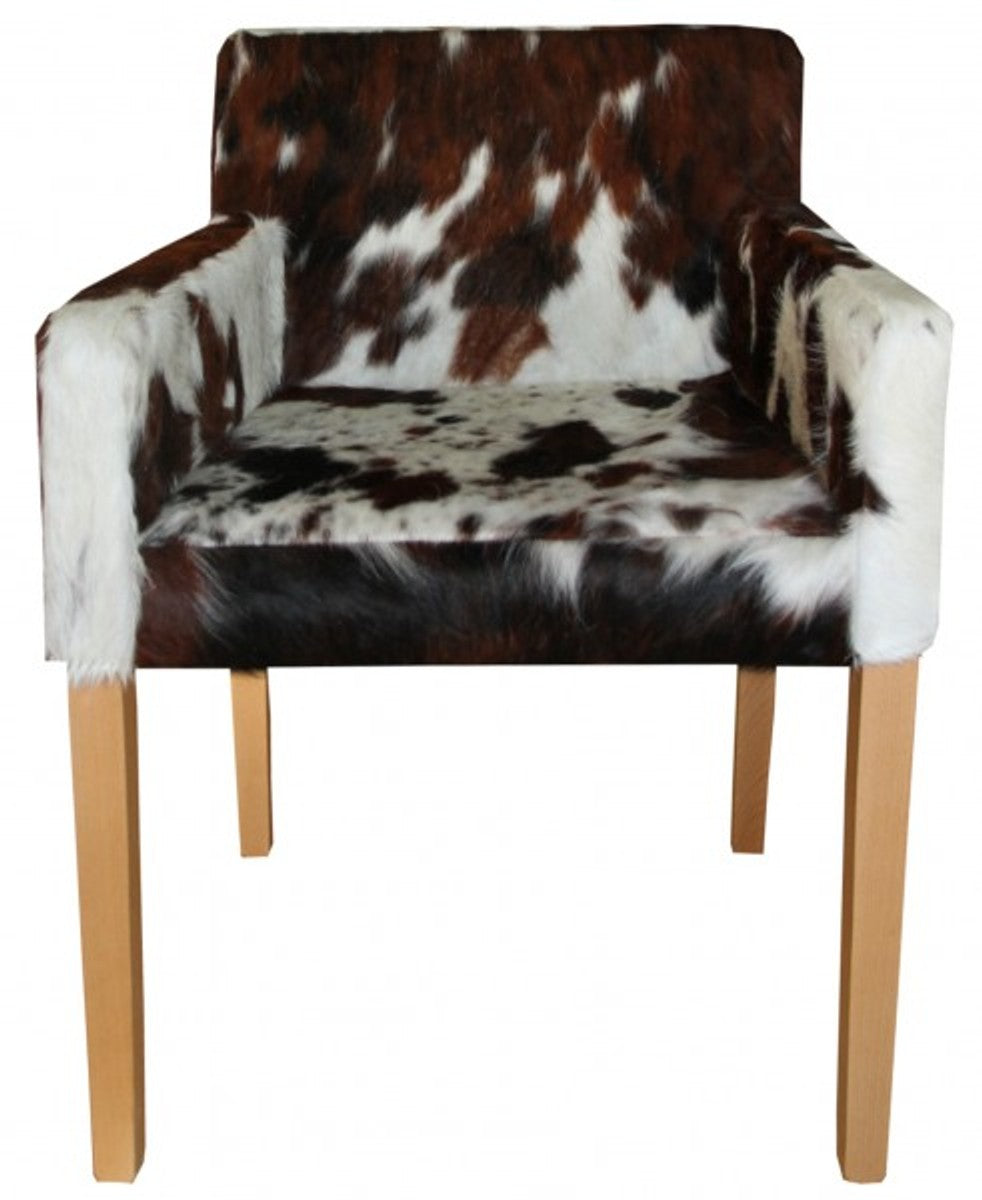 Designer Esszimmer Stuhl mit Armlehnen ModEF 35 Kuhfell - Hotelmöbel - Buche - Echtes Fell