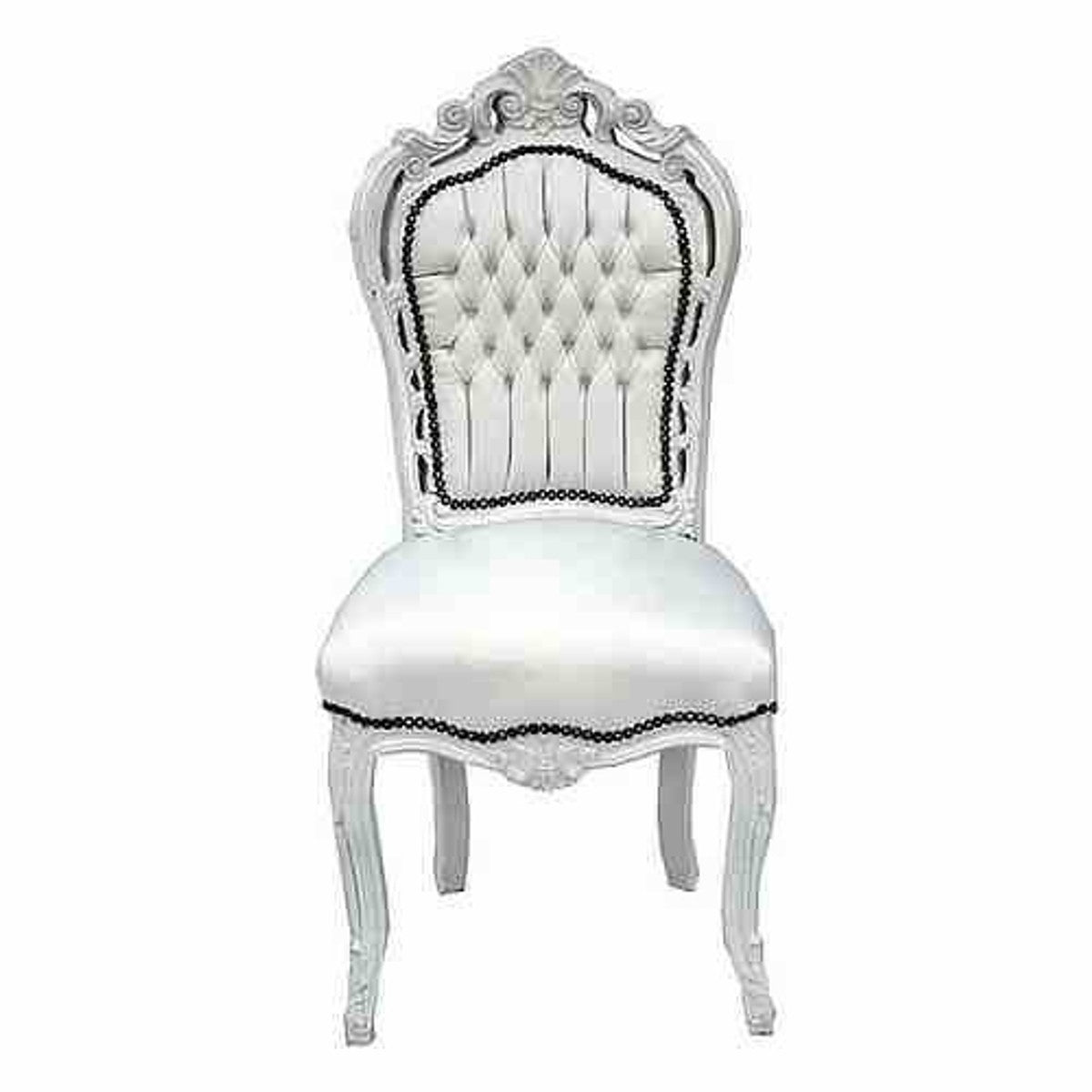 Barock Esszimmer Stuhl Weiß/Weiß Lederoptik - Antik Stil Möbel