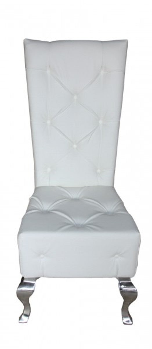 Barock Esszimmer Stuhl Weiß Lederoptik - Designer Stuhl - Luxus Qualität Hochlehnstuhl