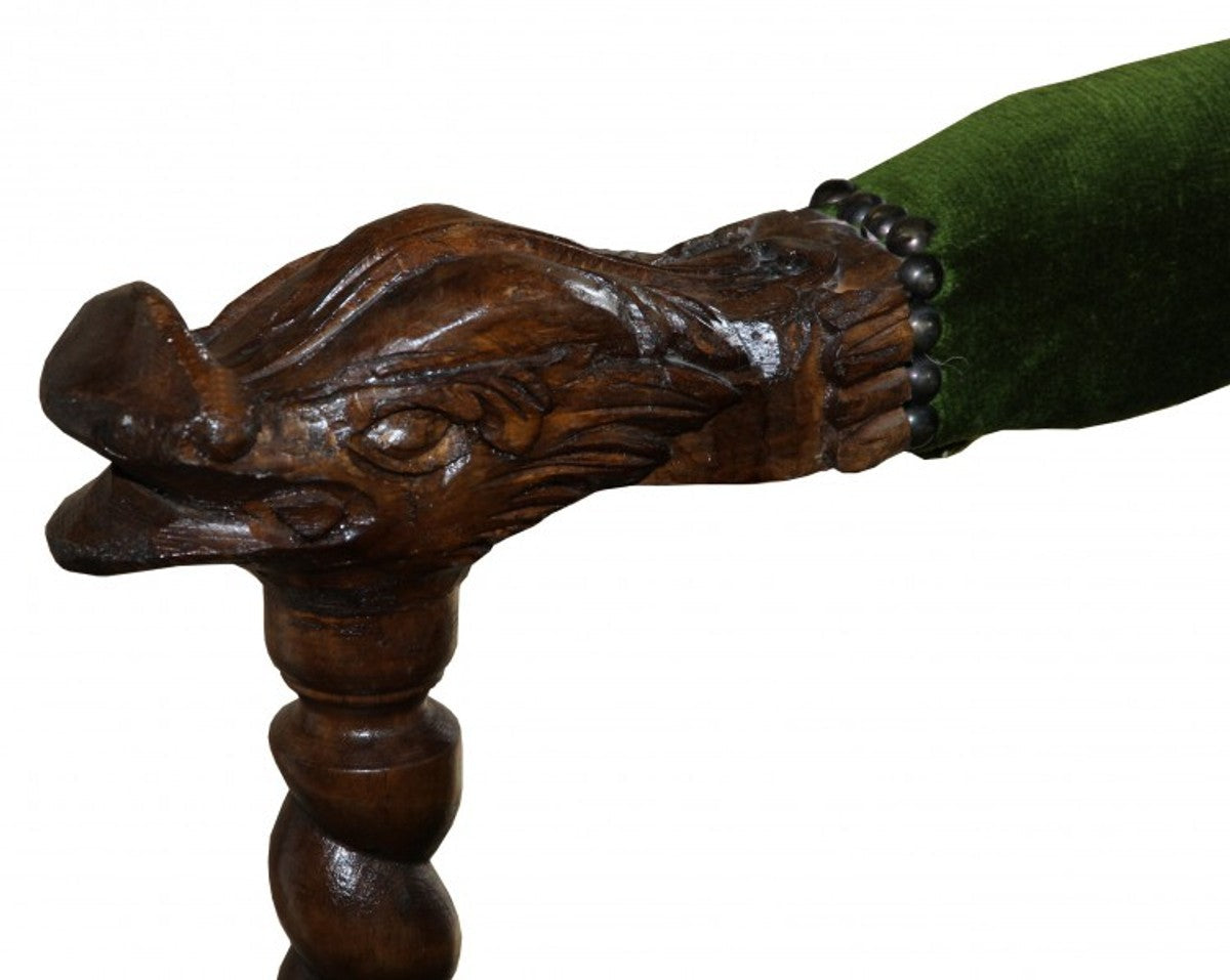 Barock Thron Sessel Grün / Mahagoni - Barock Möbel Tron Königssessel