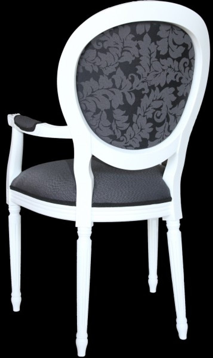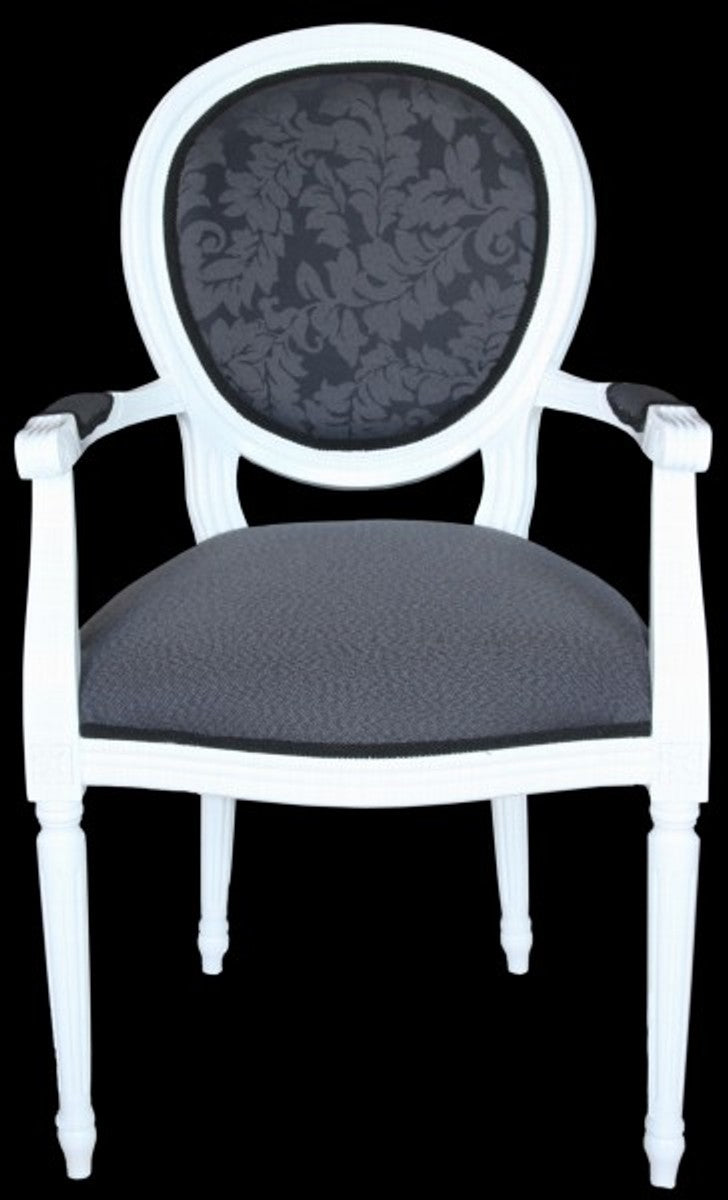 Barock Esszimmer Stuhl mit Armlehne Grau / Weiß - Designer Stuhl - Luxus Qualität