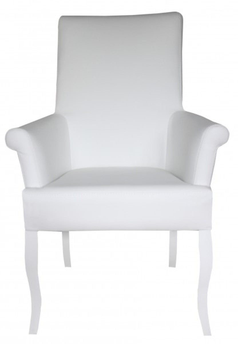 Esszimmer Stuhl Weiß / Weiß Kunstleder mit Armlehnen - Barock Möbel