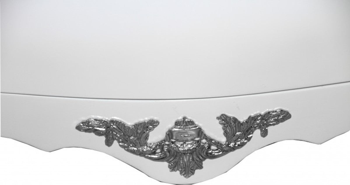 Barock Kommode Weiss 120 cm mit silbernen Metallapplikationen
