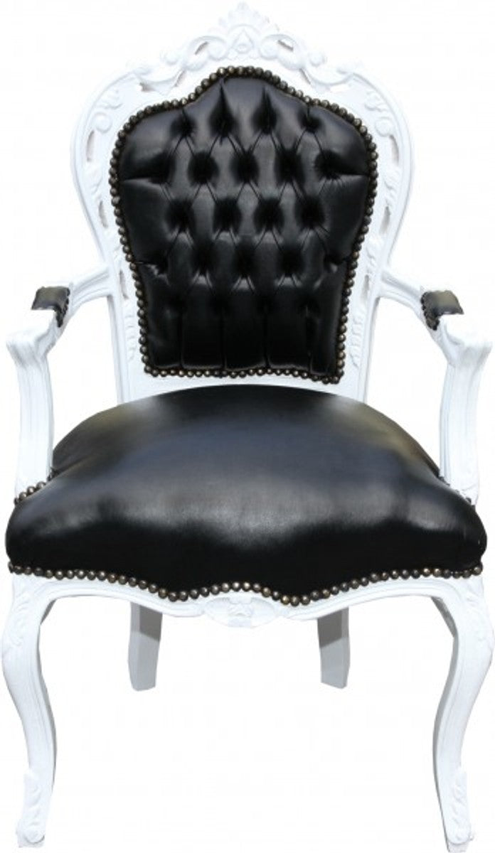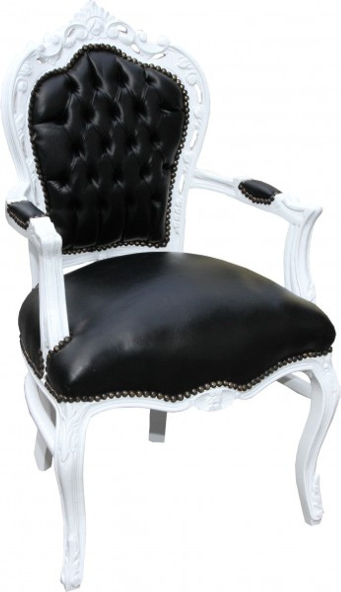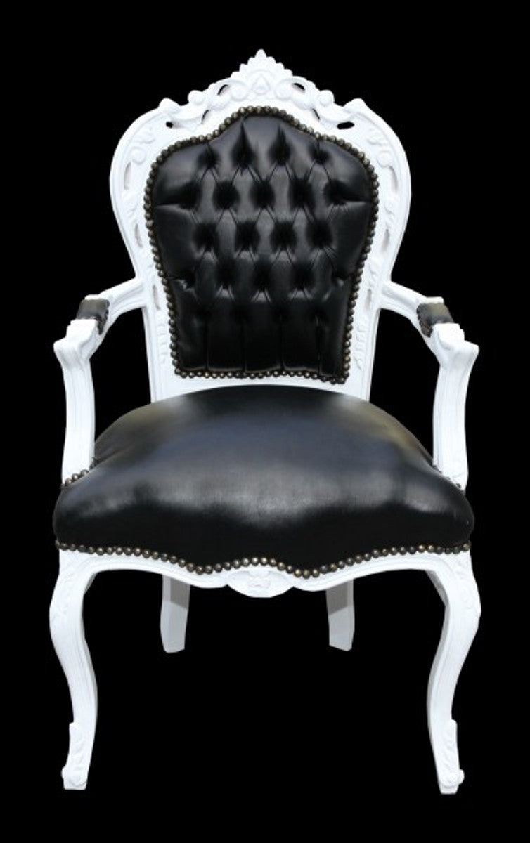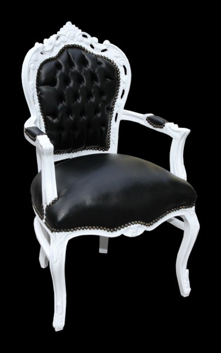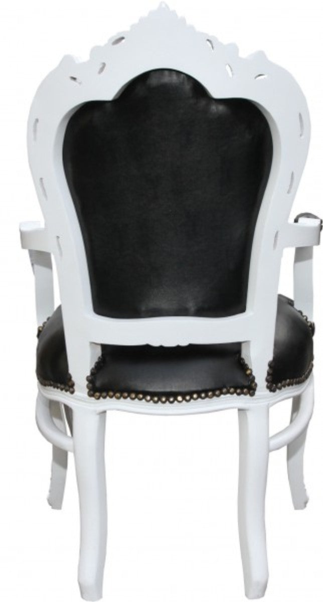 Barock Esszimmerstuhl Schwarz / Weiß Lederoptik mit Armlehnen
