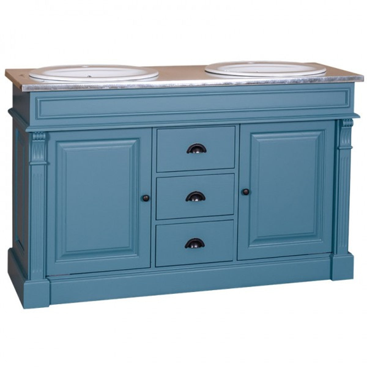 Landhaus Stil Waschschrank Waschtisch inkl 2 Waschbecken mit Schubladen und Schranktüren Nizza - Bad Schrank Massivholz