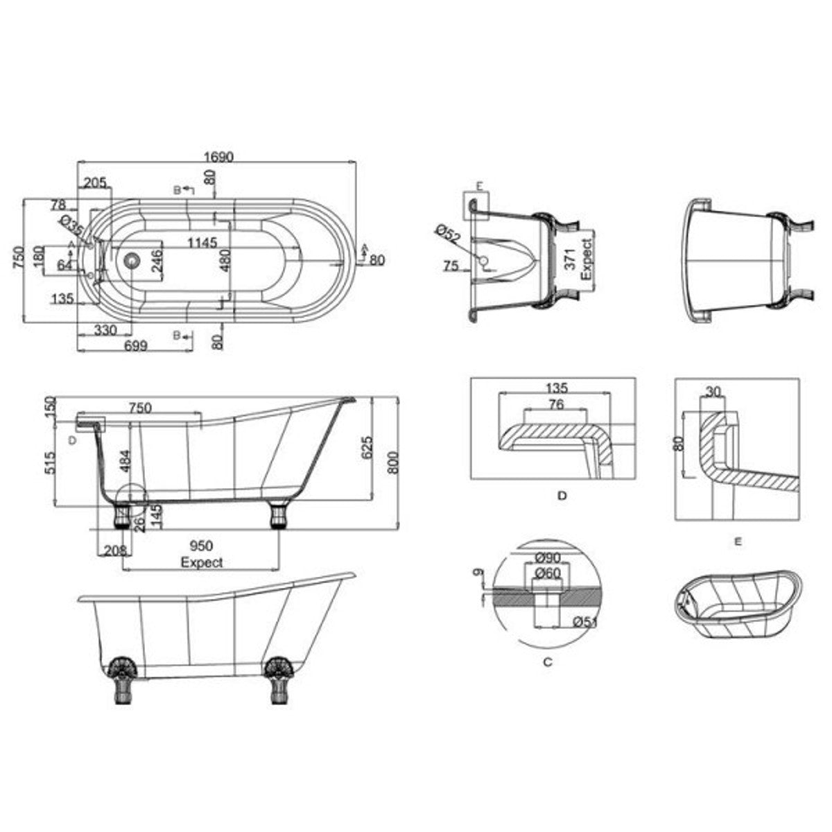 Die Badewanne ist mit 18 verschiedenen Füßen erhältlich.