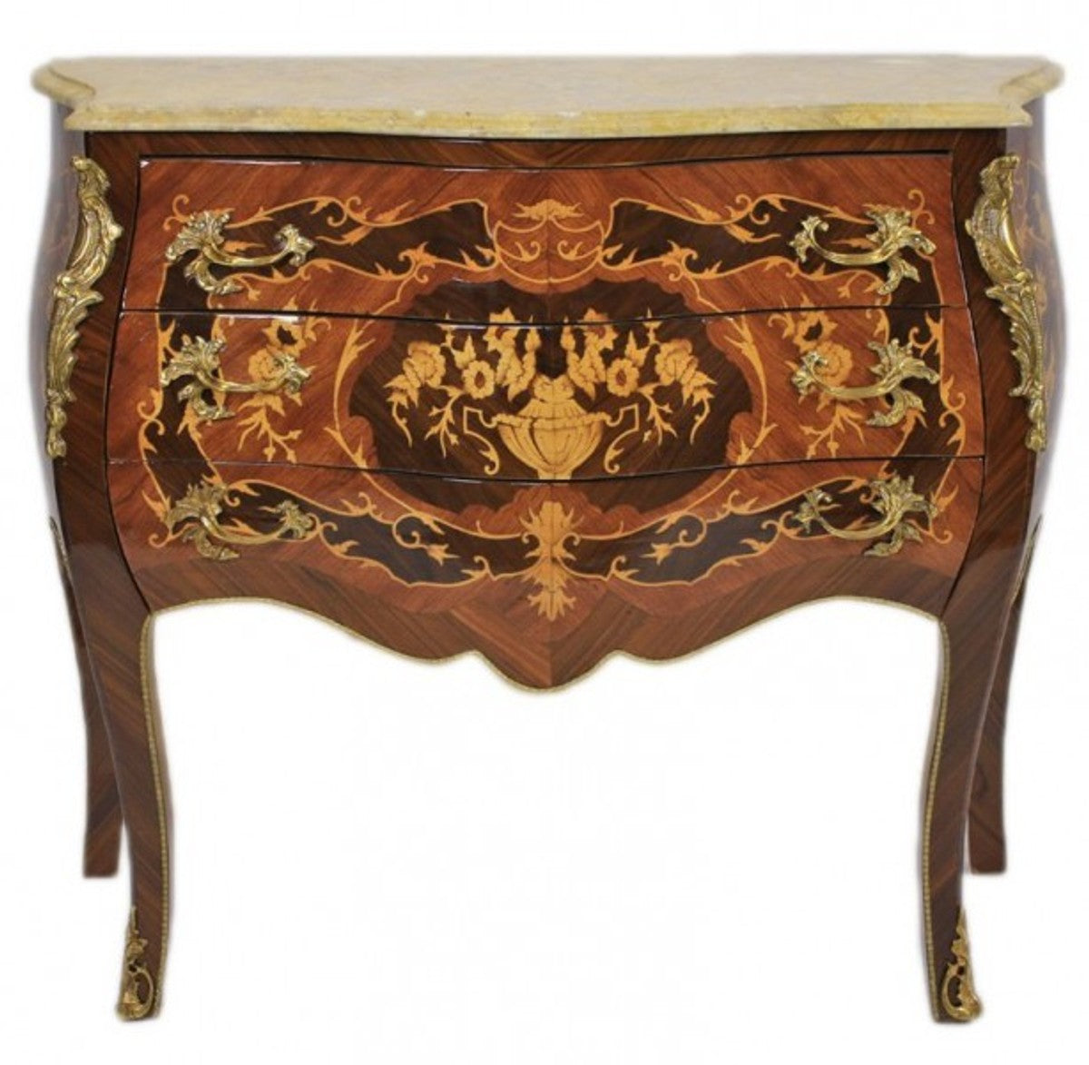 Barock Kommode Braun mit cremefarbener Marmorplatte 3 Schubladen - Empire Kommode