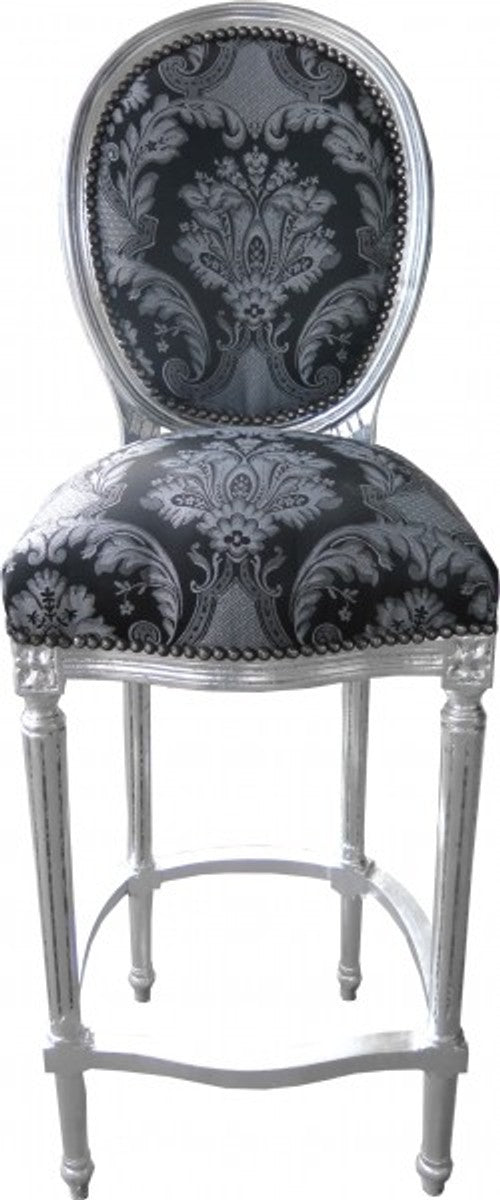 Barock Bar Stuhl Schwarz Muster / Silber - Hochstuhl Barstuhl Barhocker - Club Möbel