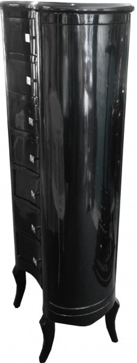 Barock Kommode Schwarz Hochglanz mit 7 Schubladen Oval - Antik Stil