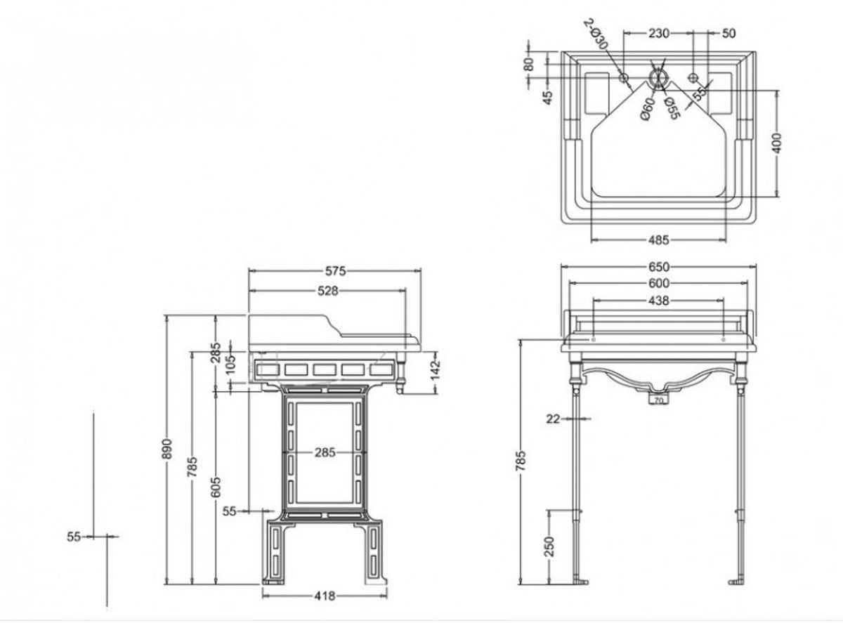 Jugendstil Stand Waschtisch Weiß / Weiß mit 2 Hahnlöchern - Barock Waschbecken Barockstil Antik Stil