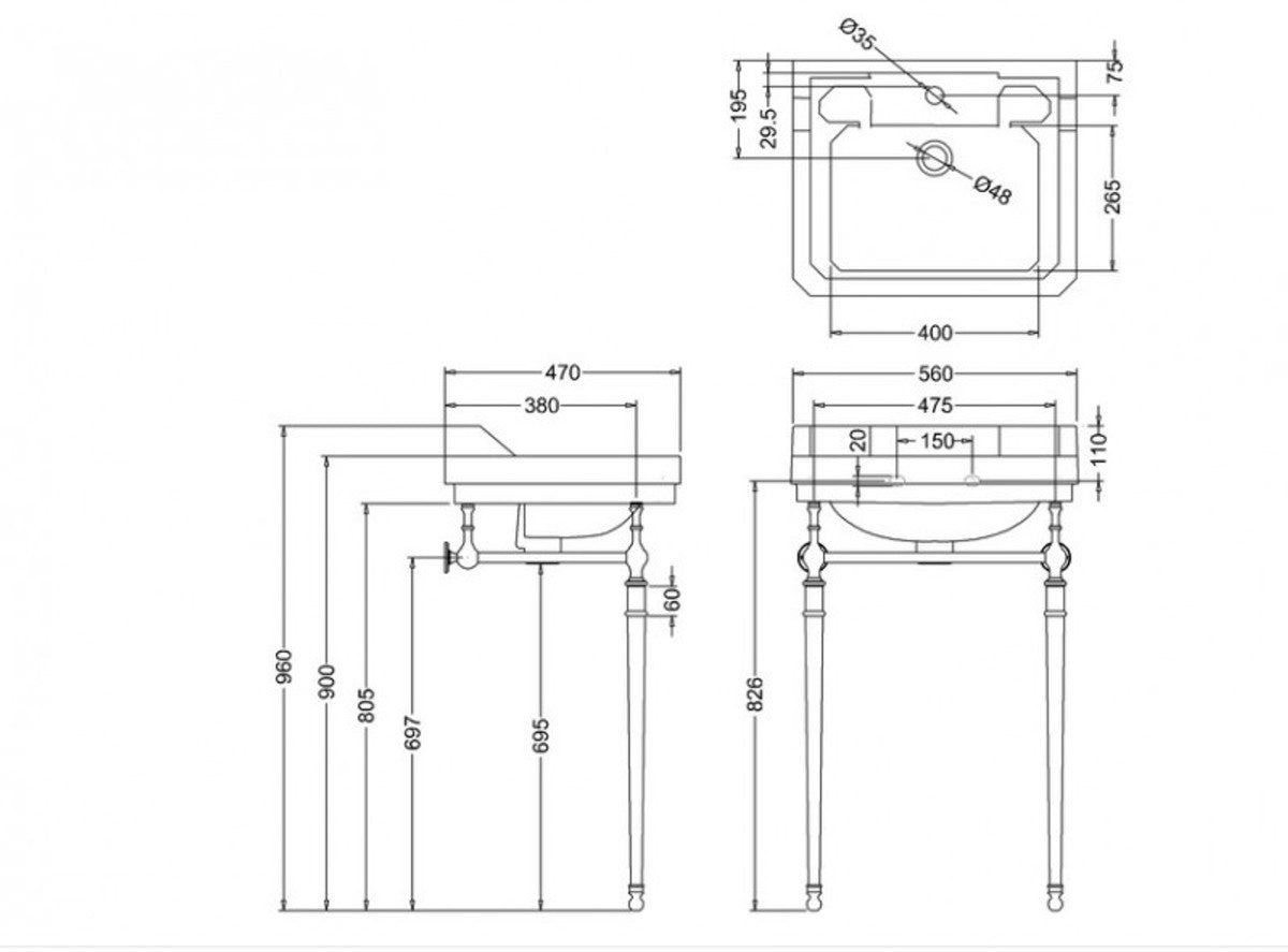 Jugendstil Stand Waschtisch Weiß / Chrom Mod2 - Art Deco Waschbecken Barock Antik Stil