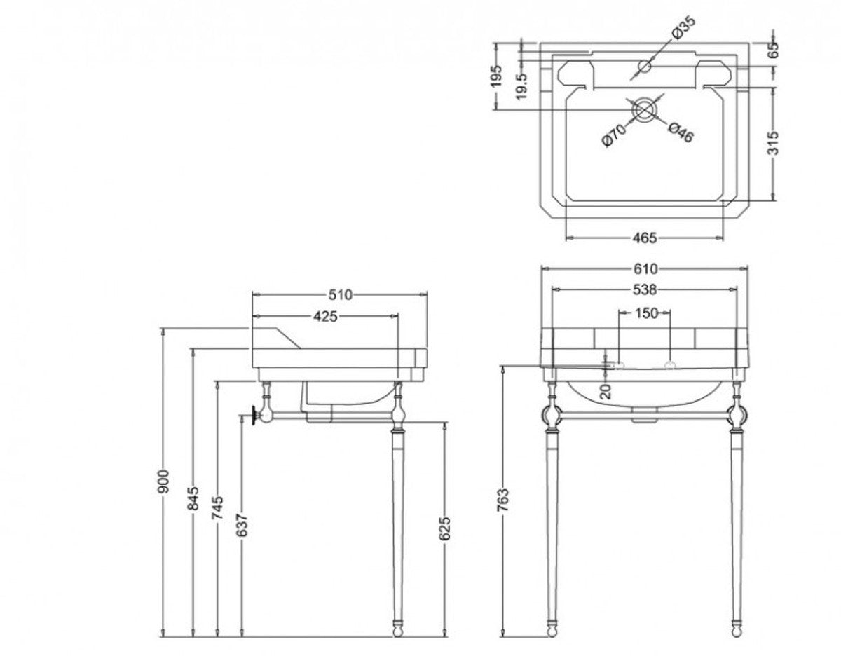 Jugendstil Stand Waschtisch Weiß / Chrom B 61cm Mod5 - Art Deco Waschbecken Barock Antik Stil