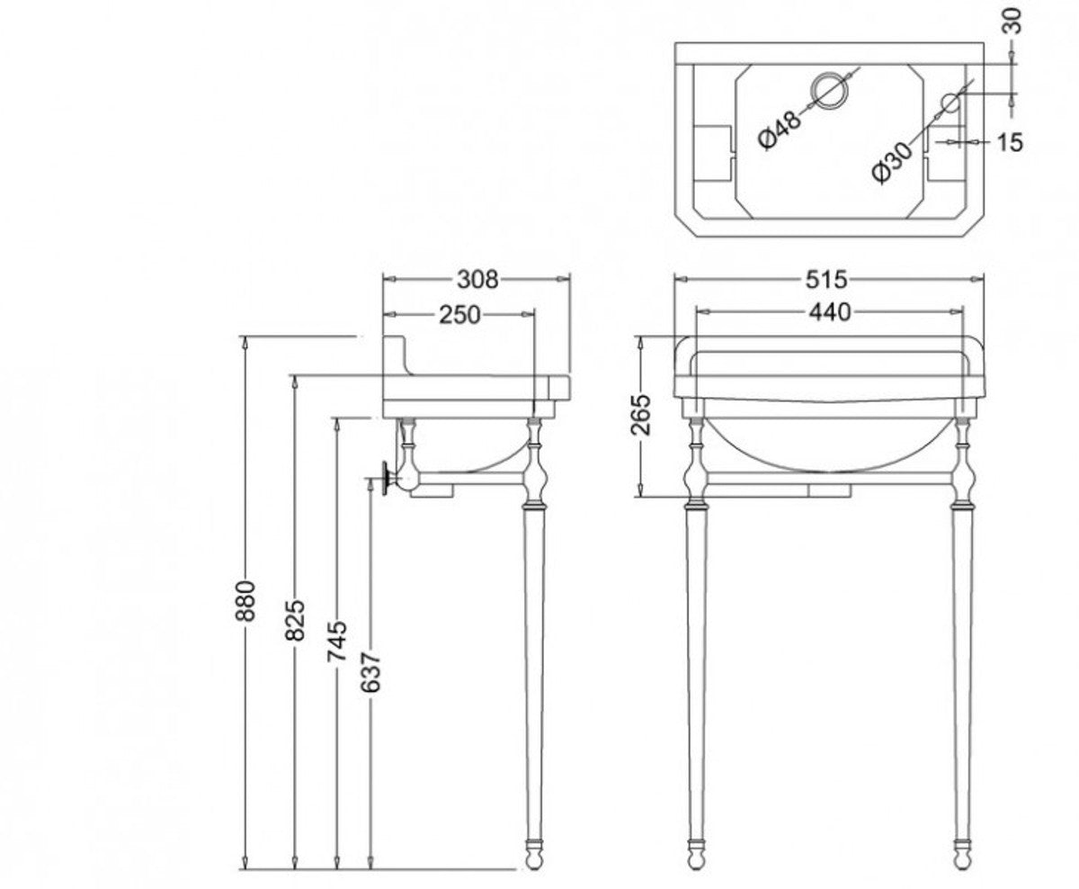 Jugendstil Stand Gäste WC Waschtisch Weiß / Chrom B 51cm - Art Deco Waschbecken Barock Antik Stil