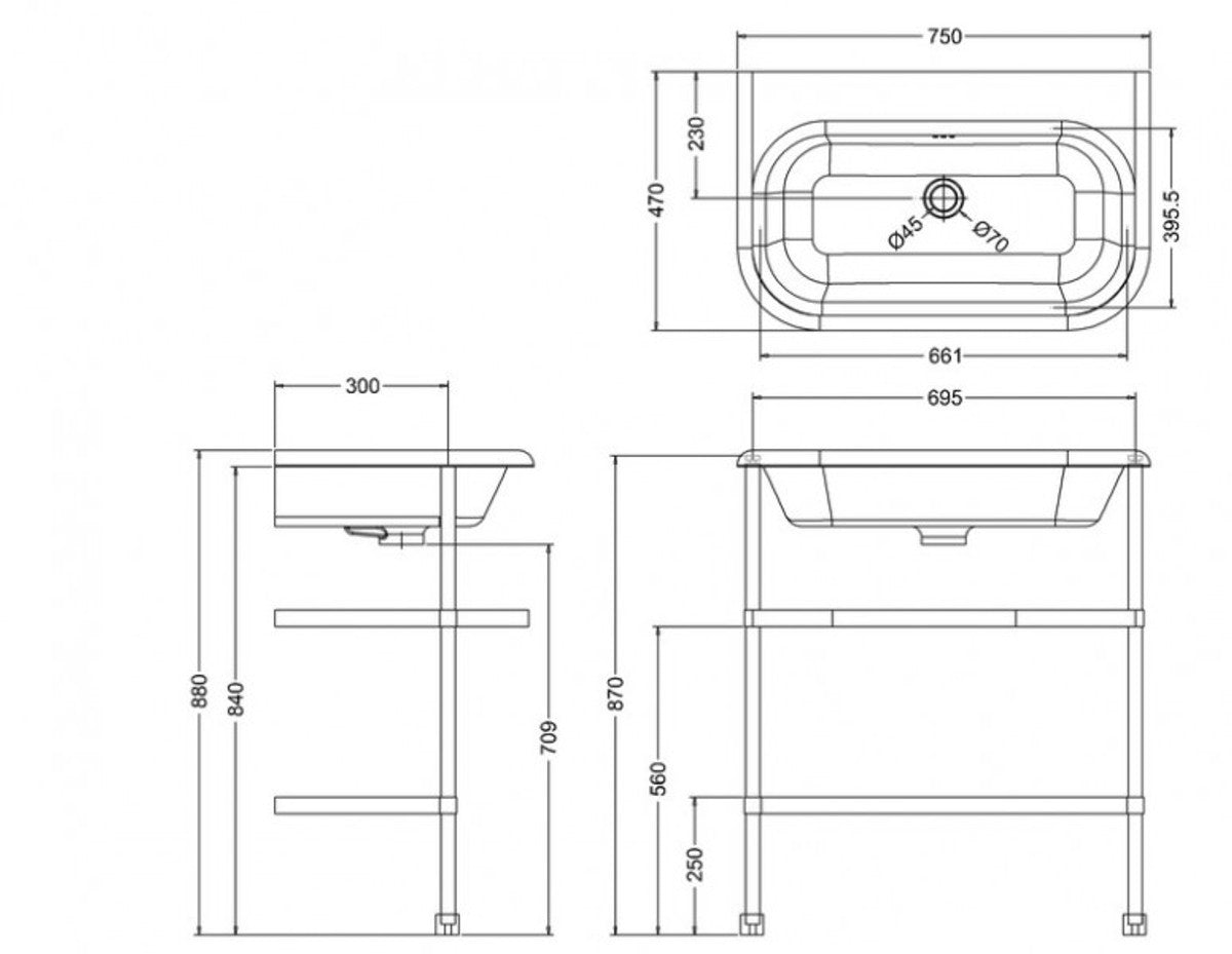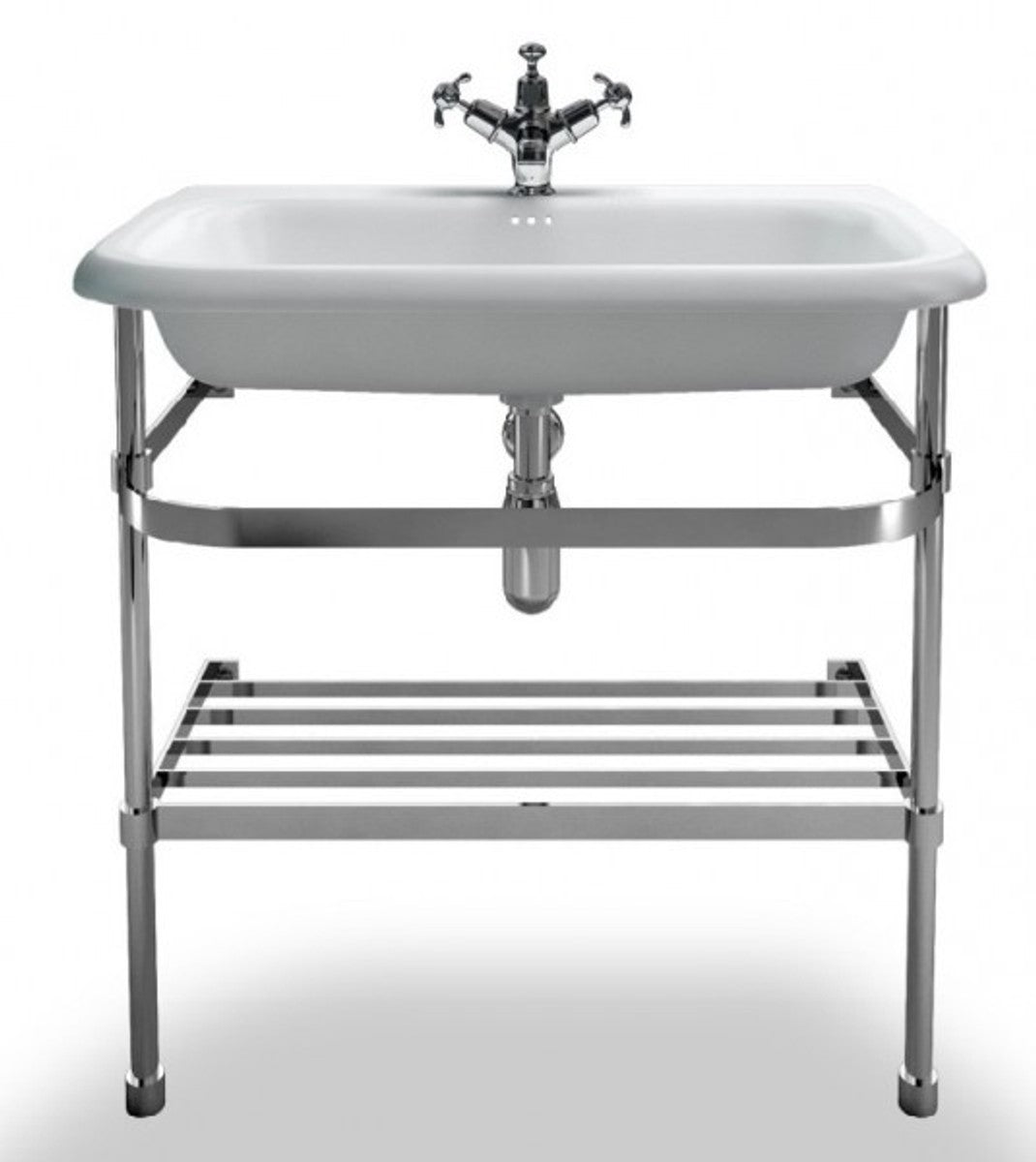 Jugendstil Stand Waschtisch Naturstein Weiß / Edelstahl