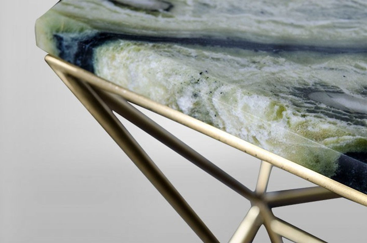 Art Deco Beistelltisch Gold Metall / Marmor 35 x 35 cm- Jugendstil Tisch - Möbel Blumentisch