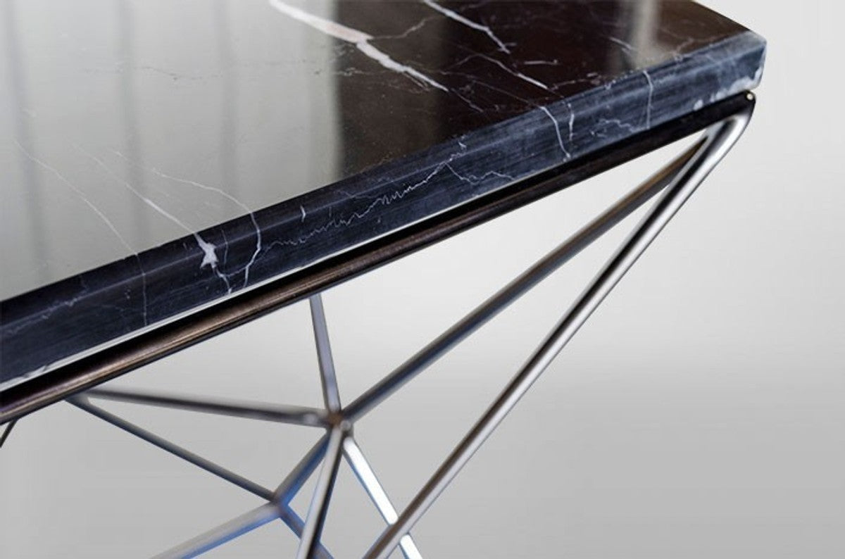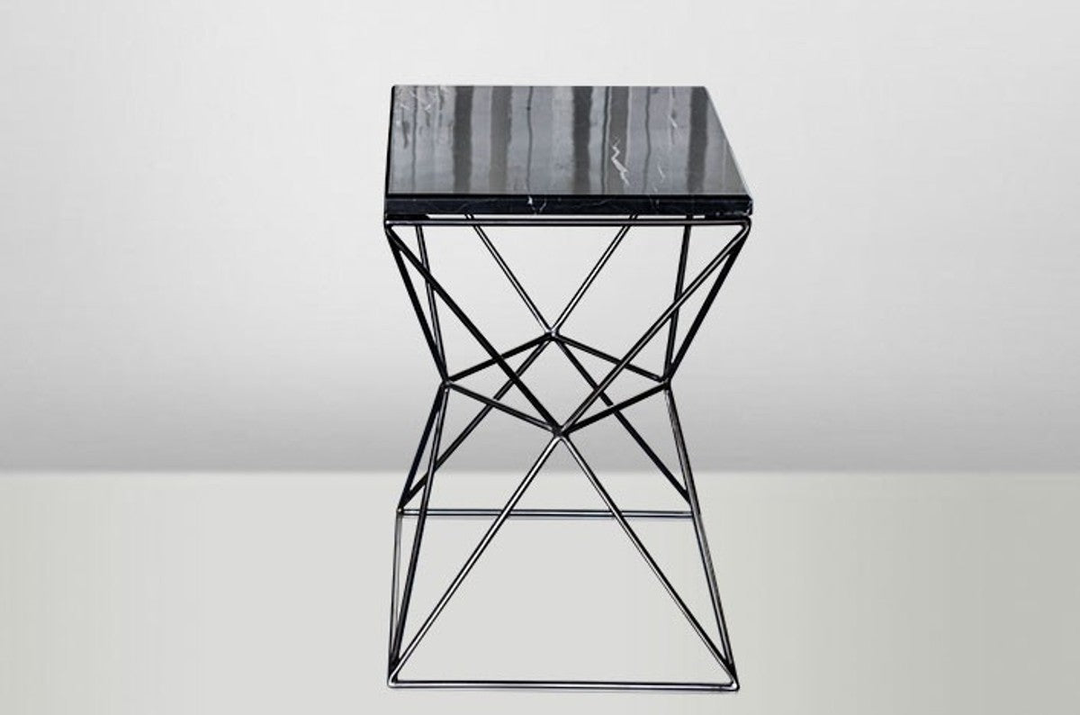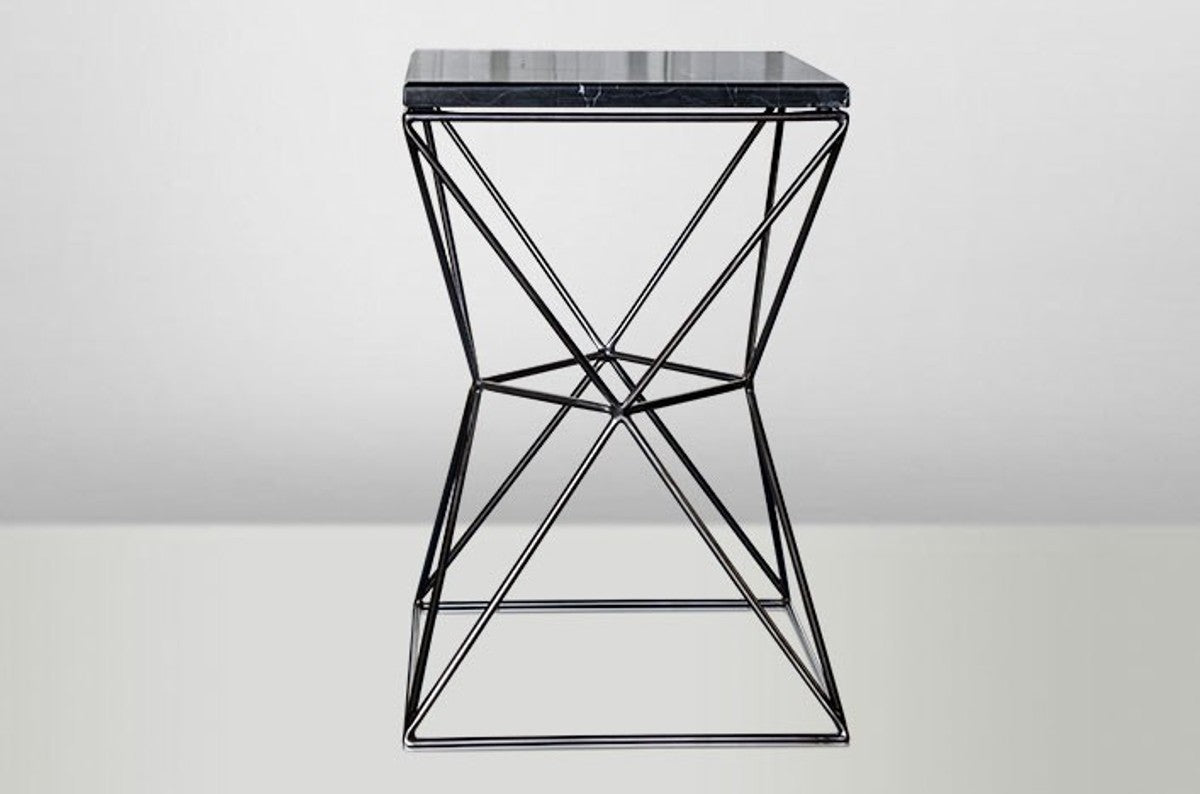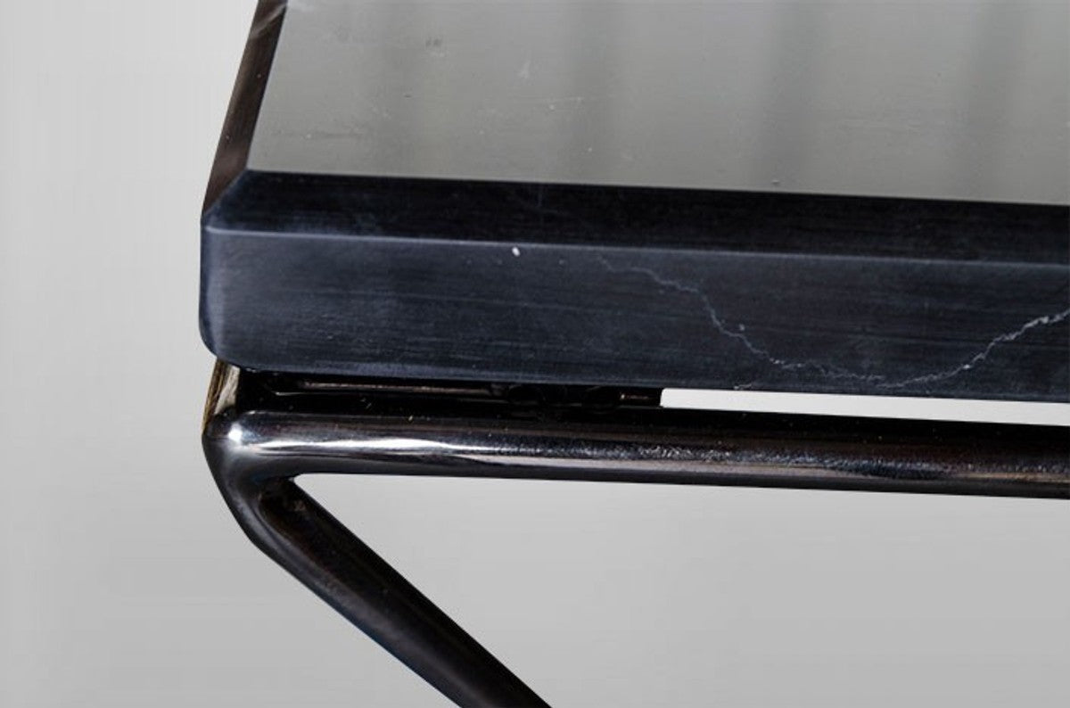 Art Deco Beistelltisch Schwarz Metall / Marmor 35 x 35 cm- Jugendstil Tisch - Möbel Blumentisch