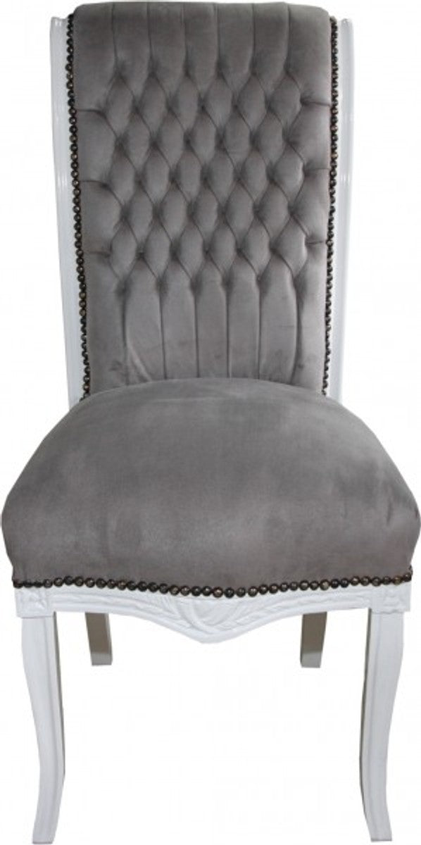 Barock Hochlehner Esszimmer Stuhl Grau/Weiss - Hochlehnstuhl Möbel- Barock Möbel