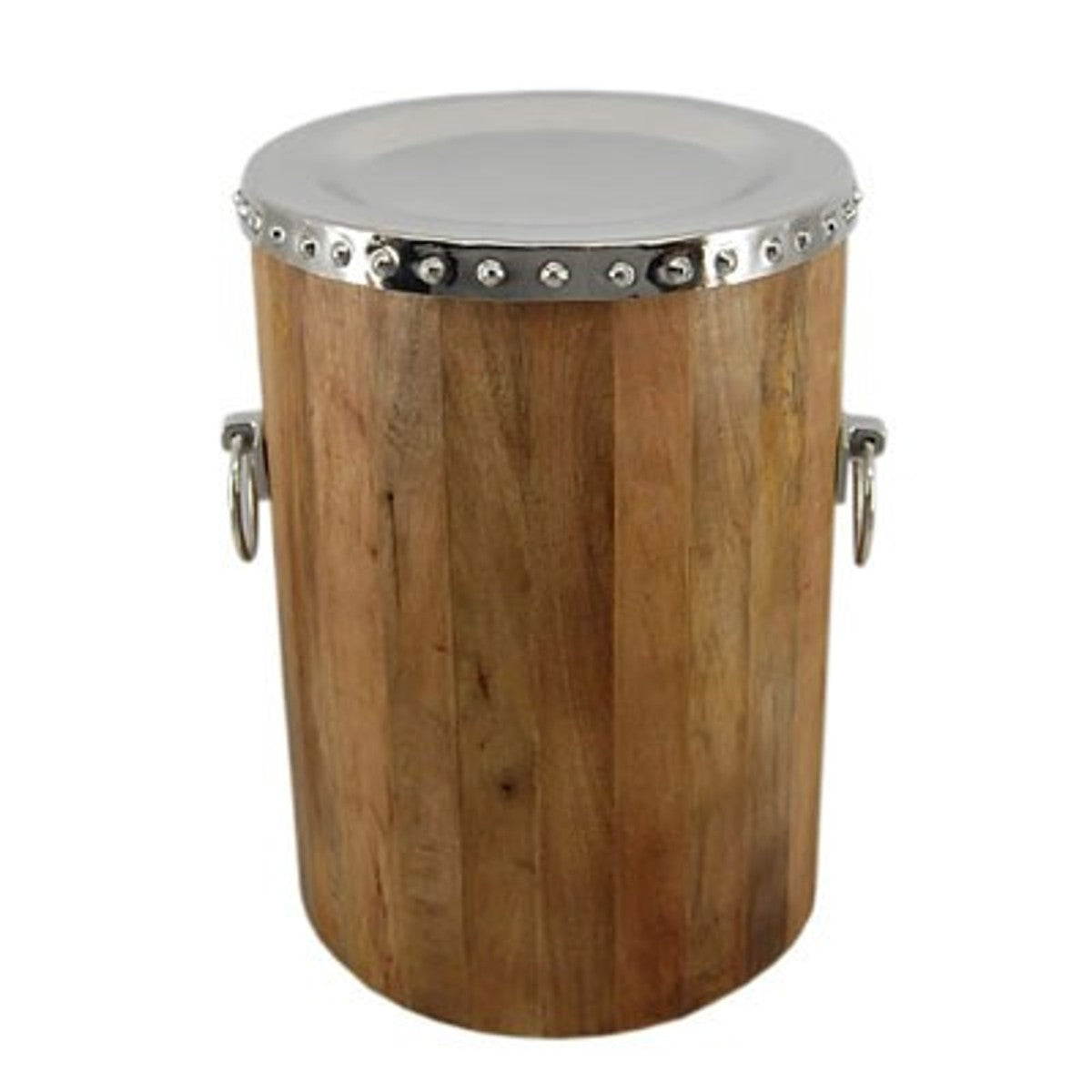 Vintage Beistelltisch Holz / Aluminium 38 x H52 cm - Jugendstil Tisch Art Deco
