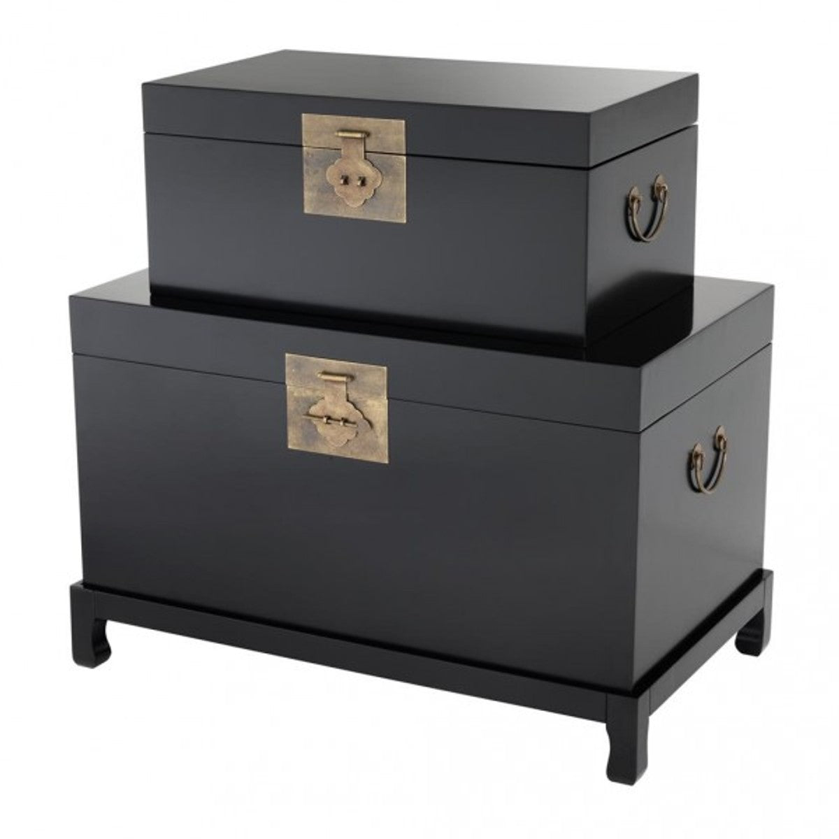 Truhen Set (2 Truhen) Schwarz / Messing Applikationen - Vintage Look Hotel Möbel