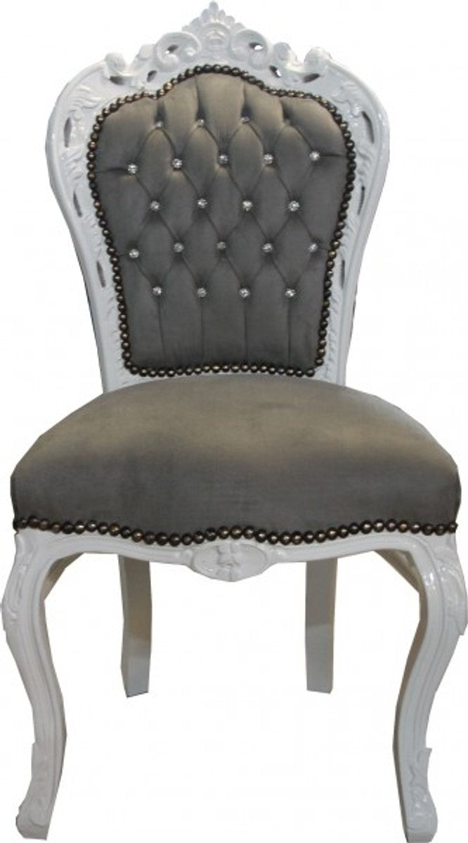 Barock Esszimmer Stuhl Grau / Weiß mit Bling Bling Glitzersteinen - Möbel Antik Stil