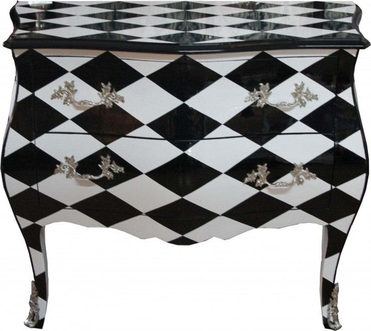 Barock Kommode Karo Schwarz/Weiß 104 cm - Handgefertigt aus Massivholz