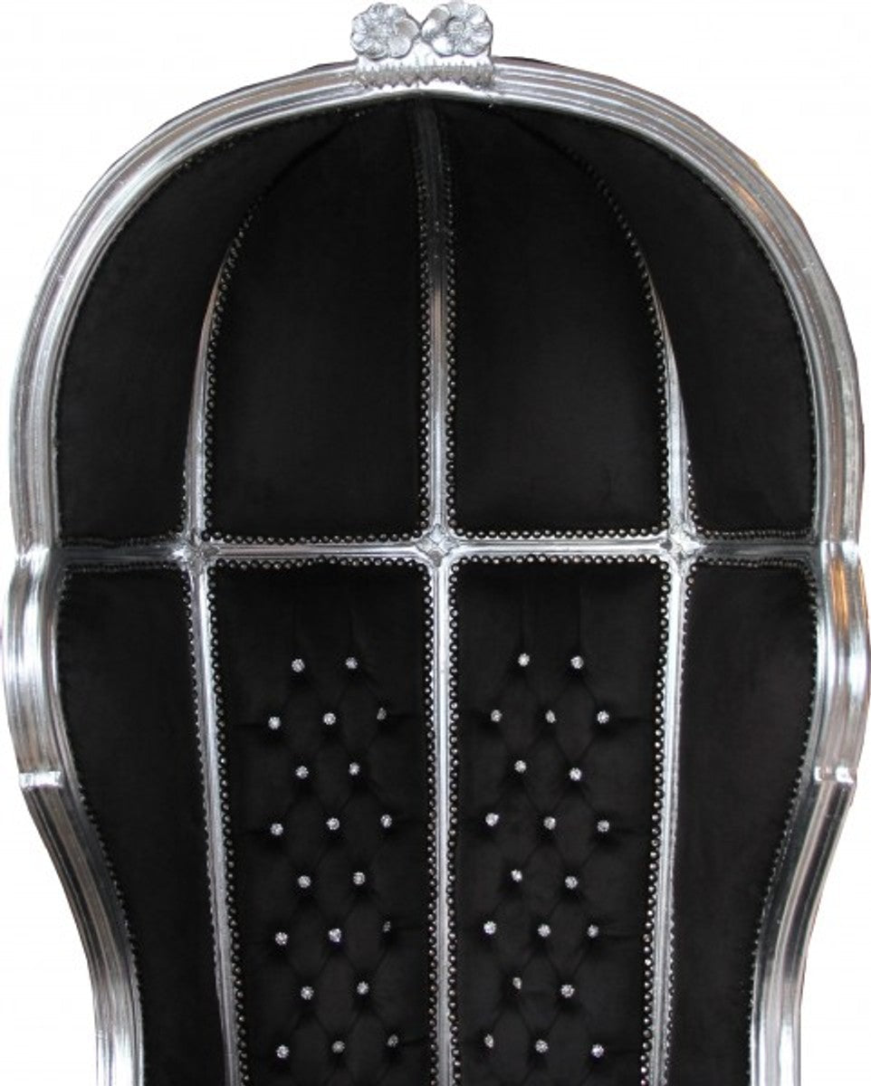 Barock Thron Sessel Victory Schwarz / Silber mit Bling Bling Glitzersteinen - Balloon Chair - Thron Stuhl Tron