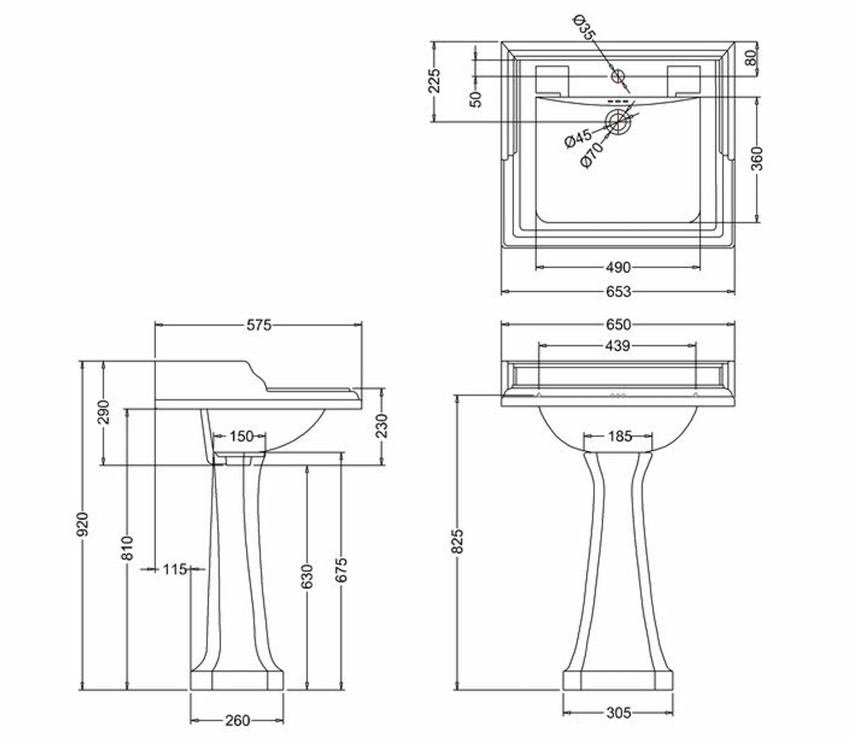 Art Deco Waschbecken mit Sockel 65 x 57,5 x H. 92 cm - Luxus Hotel Kollektion