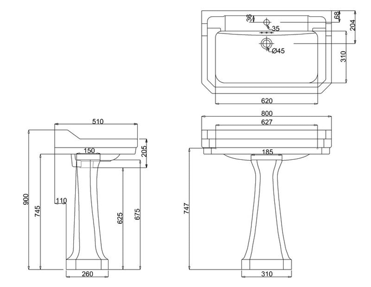 Porzellan Waschbecken mit Sockel 80 x 51 x H. 90 cm - Jugendstil Design