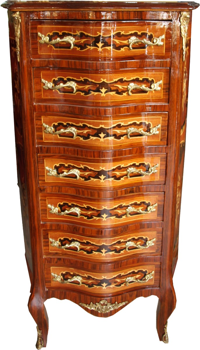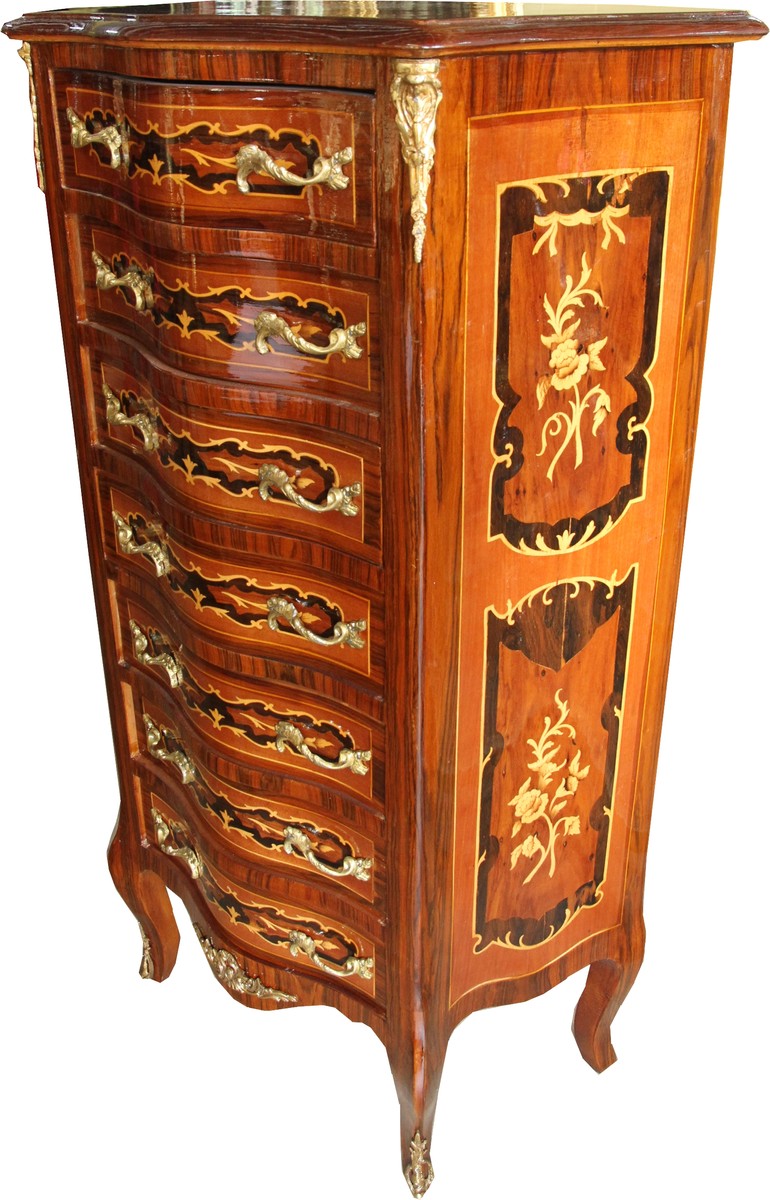 Barock Kommode Mahagoni Intarsien mit 7 Schubladen 123 x 70 x 35 cm - Antik Stil
