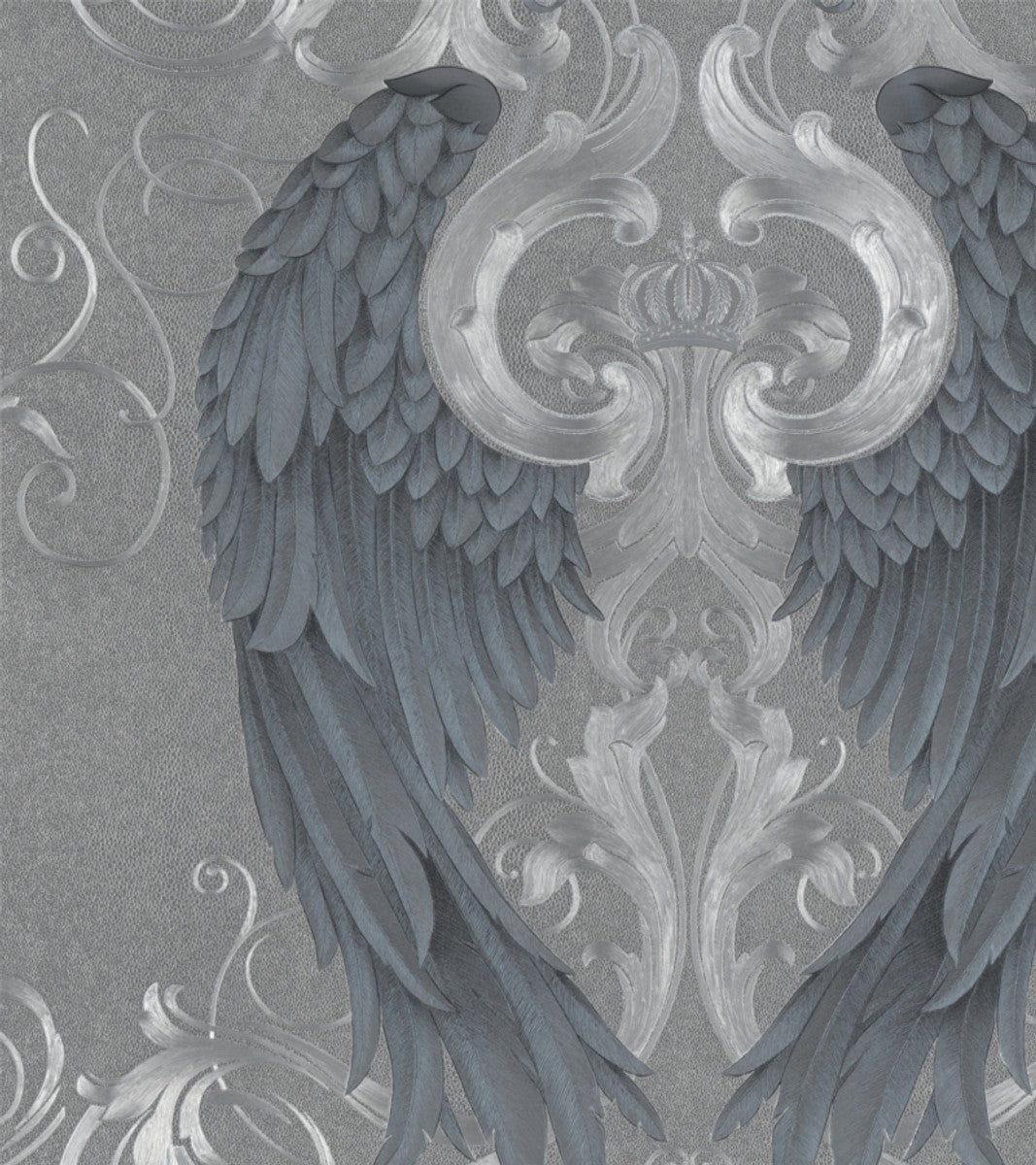 Harald Glööckler Imperial Barock Tapete 52579 - Grau/Blau mit Engelsflügeln